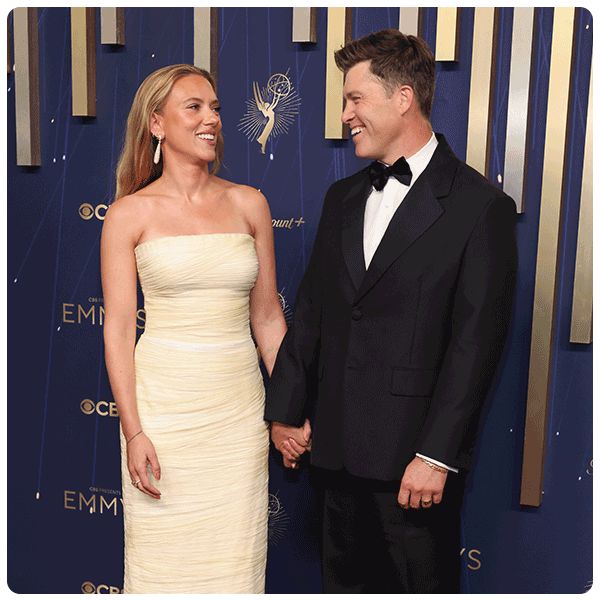 Scarlett Johansson and Colin Jost traded bedtime stories for the red carpet, stepping out for a rare date night. The couple are parents to daughter Rose, 10, from Johansson’s previous marriage, and son Cosmo, 3, whom they welcomed together in 2021. Jost, as a part of the SNL50: The Anniversary Special cast, took home the award for Best Variety Special (Live).