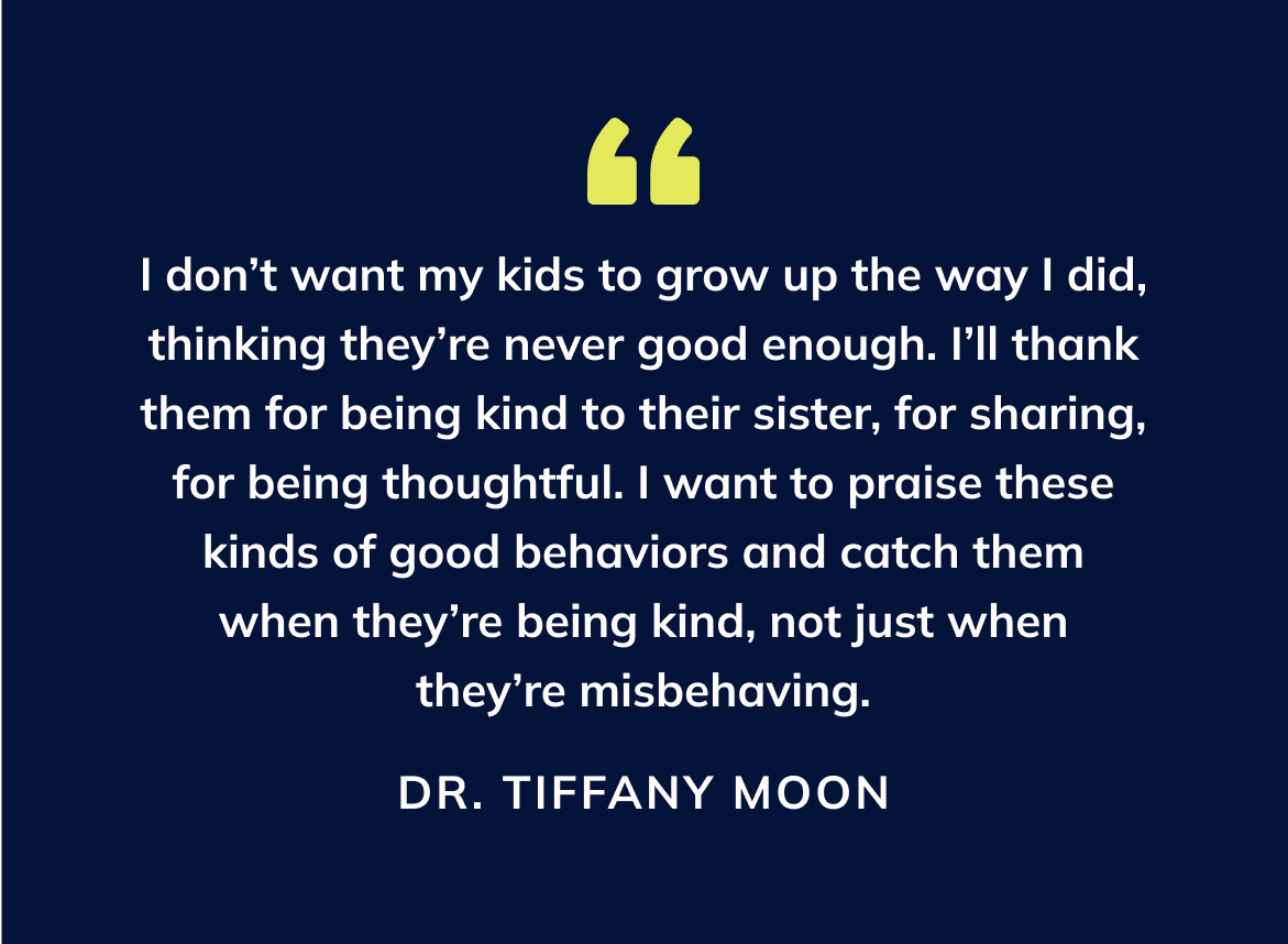 I don’t want my kids to grow up the way I did, thinking they’re never good enough. I’m constantly telling them they are enough—that I love them. I’ll thank them for being kind to their sister, for sharing, for being thoughtful. I want to praise these kinds of good behaviors and catch them when they’re being kind, not just when they’re misbehaving.