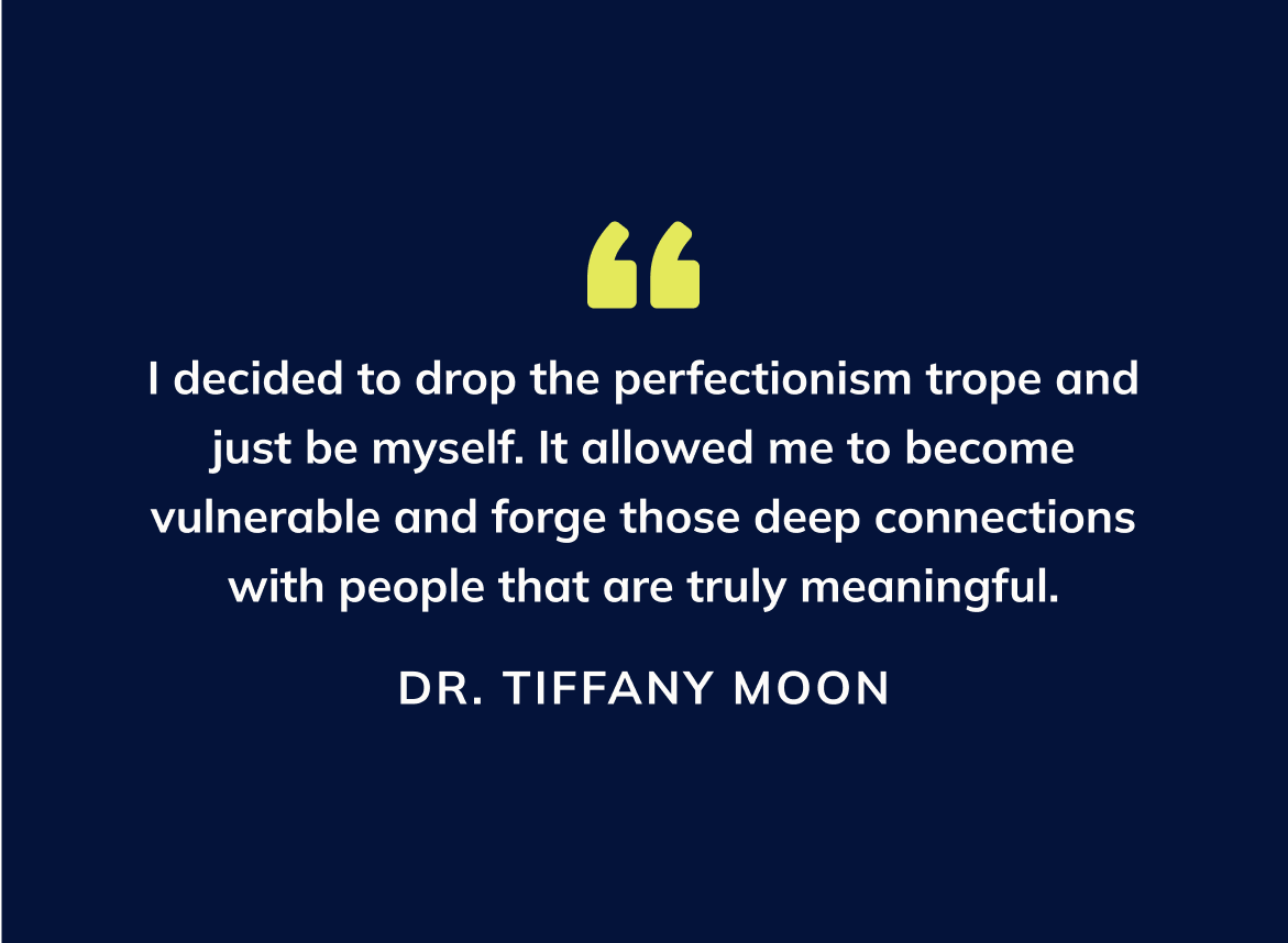 Tiffany Moon: When my twins were young, I wanted to seem like I was this perfect mom and had it all together. I was working full-time as an academic anesthesiologist, and I’d always make sure the girls were perfectly dressed in coordinating or matching outfits, and we’d go out, and it was just so lonely and exhausting. I missed out on a lot of moments of potential connection because I had to maintain this facade of being perfect.